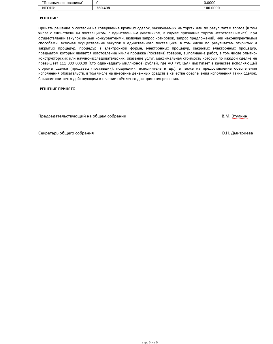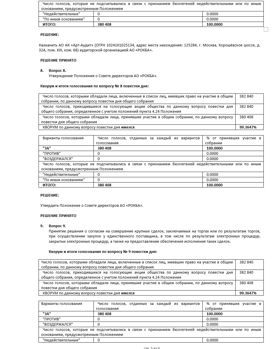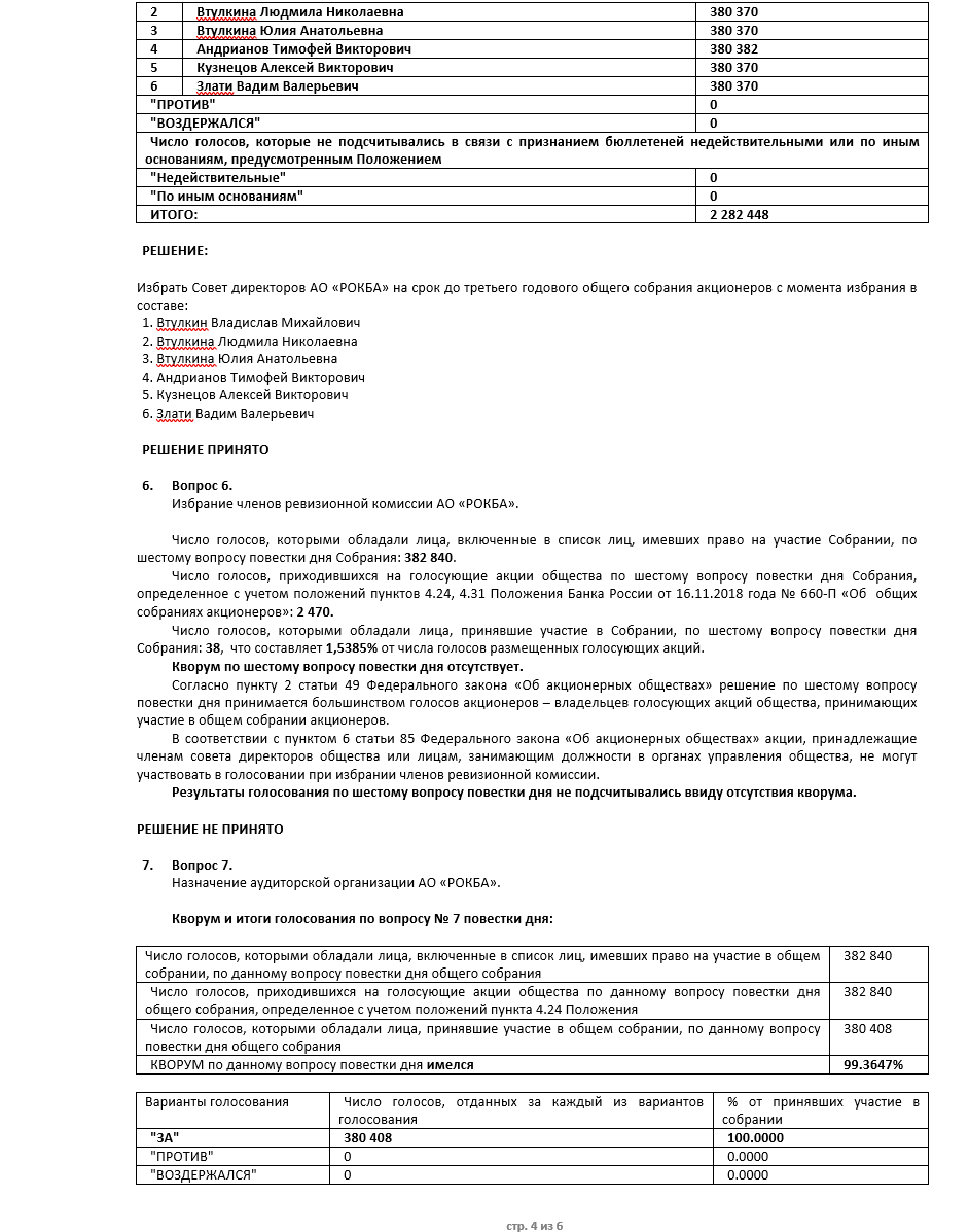 6. Избрание членов ревизионной комиссии АО «РОКБА».